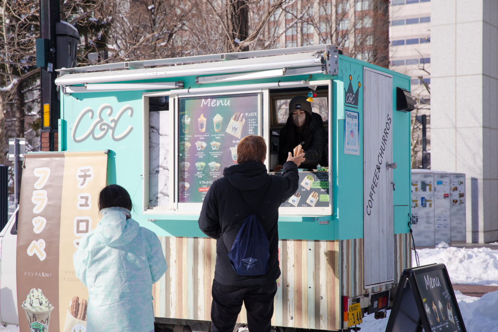 会場には温かいフードやドリンクを提供するキッチンカーも出店。