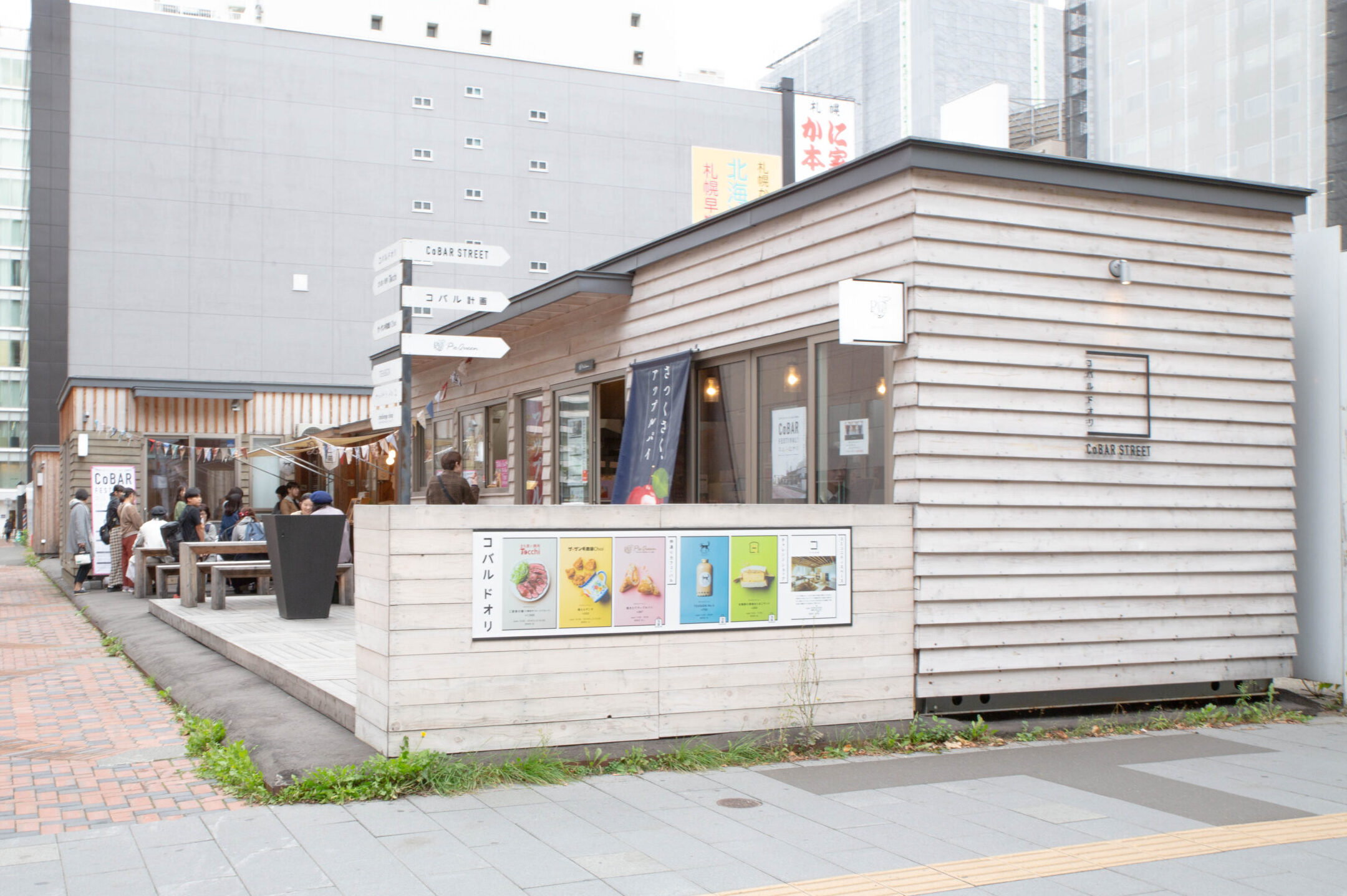 コバルドオリは、「札幌駅前通地区の仲通りの魅力を新たに発信する試み」として札幌駅前の旧五番舘西武跡地の一角にオープンしました。札幌で活躍する若手の事業者による飲食店舗のほか、都心部において店舗を構えていきたい小さな企業などに向けたチャレンジショップも開設。イベントも行えるコミュニティスペース「コバル計画」も開設し、まちを面白くするプレーヤーがつながりあう交流の場を目指し運営しました。
